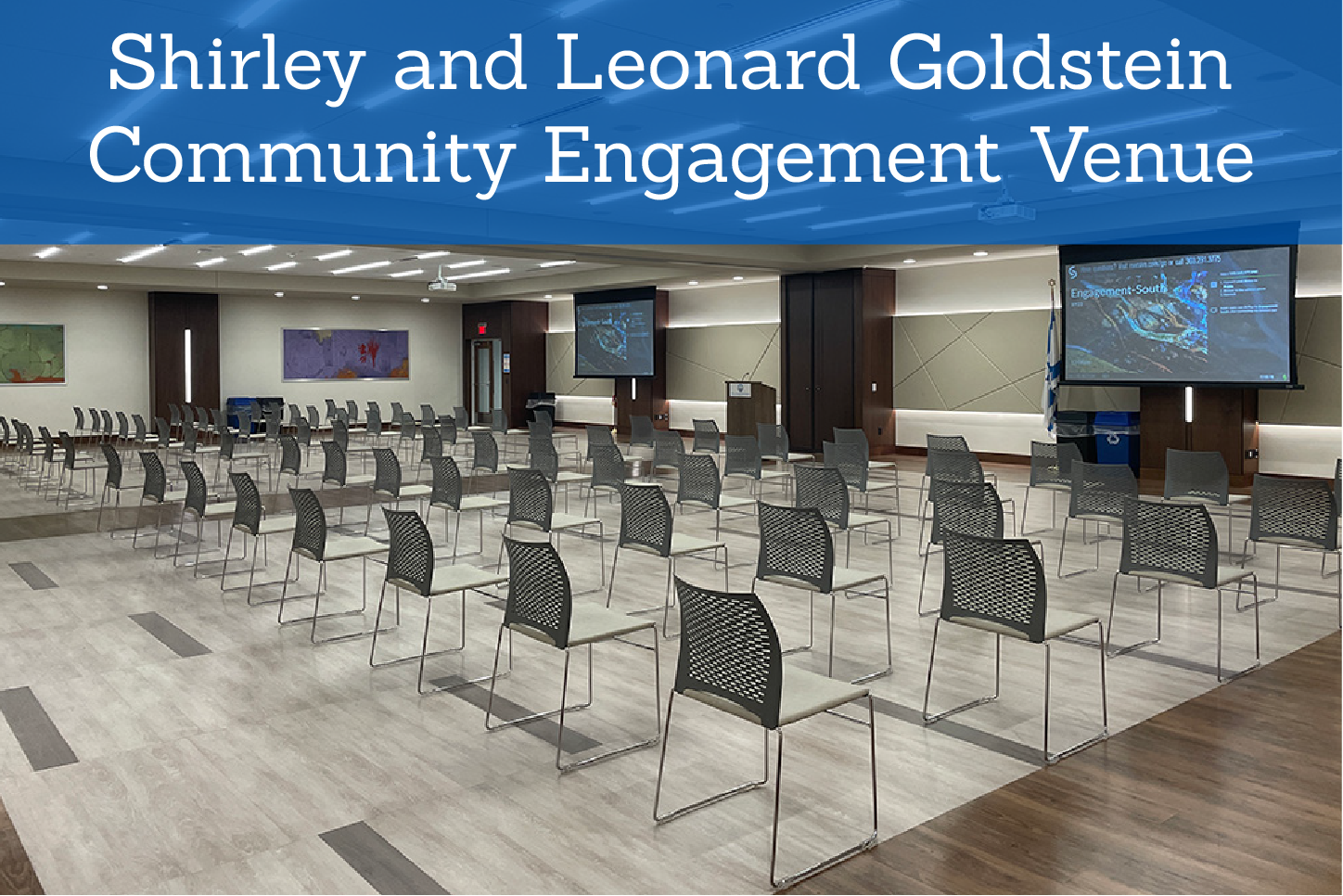 This fresh and functional space is perfect for wedding receptions, holiday parties, and other large-scale events, featuring an integrated sound system with wireless microphones, projectors, and video streaming capabilities.